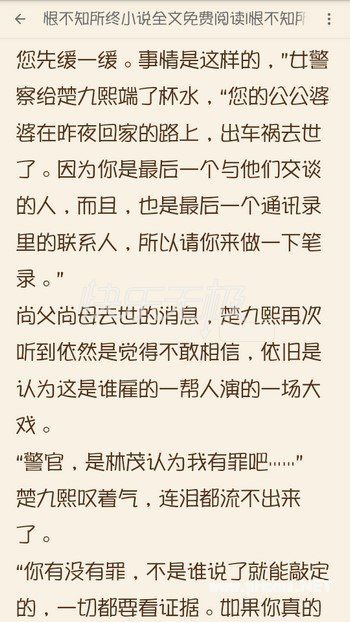 伤感言情小说《恨不知所终》告诉我们因为爱过,所以慈悲;因为懂得,所以宽容。尚父尚母去世的消息,楚九熙再次听到依然是觉得不敢相信,依旧是认为这是谁雇的一帮人演的一场大戏。“警官,是林茂认为我有罪吧……”楚九熙叹着气,连泪都流不出来了。《恨不知所终》全文非常好看,可以在本站免费下载阅读完整章节。
