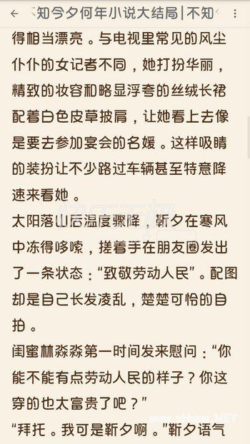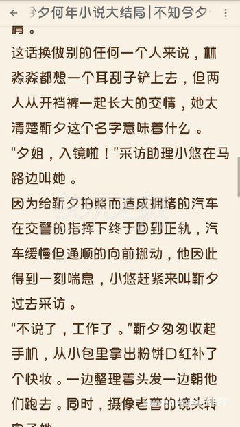 小说《不知今夕何年》就像一个充满秘密的匣子,里面盛放着一个女子的喜怒哀乐,悲欢离合,一个女子在人世间的沉浮起落。交警工作间隙眼神不自觉飘向在旁边等候的女记者靳夕身上,靳夕长得相当漂亮。与电视里常见的风尘仆仆的女记者不同,她打扮华丽,精致的妆容和略显浮夸的丝绒长裙配着白色皮草披肩,让她看上去像是要去参加宴会的名媛。这样吸睛的装扮让不少路过车辆甚至特意降速来看她。快来下载小编带来的app阅读器,体验《不知今夕何年》大结局免费阅读。