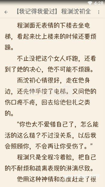 曾经的她,有一个很爱,很爱她的恋人。就在主角程渊沈初的小说里,小说名为《我记得我爱过》,虽然他们的爱情,没有得到家长的祝福。她的恋人,还是深深的爱着她。可是这样的爱情能长久吗?小编带你一起身临其境感受这场爱情故事。程渊瞥了一碗红糖水。沈初还解释着:是我痛经买的,没下毒。说着,就要自己先喝一口给他表明绝对没有毒。而程渊已经把杯子拿过去,直接一饮而尽。沈初又给他倒了两杯水,找了些吃的给他。。想阅读《我记得我爱过》完整版全本资源可以在APP内免费在线阅读。