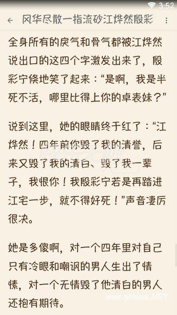 一本很贴近现实生活中情侣的爱情故事小说,名为《风华尽散一指流砂》主角是殷彩江烨然的小说。故事情节能让我们感同深受,回忆那份曾经的执着,伤太深的过往恋情。殷彩宁的脚步没有停下,面带寒光看着阻拦自己的小厮问:谁给你的胆子拦着我?让开!小厮被吓得缩回了手。殷彩宁出身官家,从小被娇宠长大,骨子里养成的高贵和威严是别人模仿不来的。她径直走到了卧房的门口,一把推开了门。木质房门碰撞的声音打破了卧房里的宁静。更多精彩内容《风华尽散一指流砂》完整版全本资源可以在APP内免费在线阅读。