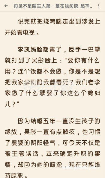 我不能像我希望的那样爱你,也不能像你希望的那样被你爱,我们彼此忘却在《再见不是陌生人》故事的最后,你忘却一个冷酷的姓名,我忘却一种我给不起的幸福。李凯妈见她居然敢躲,顿时气的跳脚:“你个不下蛋的母鸡,反了天了,居然敢躲?”“我的天爷啊,我这是造了什么孽了,儿子娶了这么个遭瘟的东西?”。小说《再见不是陌生人》已经完结,快来本站免费下载阅读。