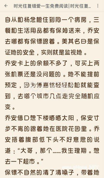 或许你喜欢风平浪静但又死去活来的爱情吗?且看小说《时光往复错爱一生》,乔安傅嘉铭两人坎坷的爱情,磕磕绊绊,能最终走向幸福吗?乔安借口想下楼晒晒太阳,保安寸步不离的跟着她在医院花园里。乔安捂着腹部低下头不好意思的说道:“大哥,那个……我生理期。想去一下超市。”。来本站下载《时光往复错爱一生》阅读看看吧。