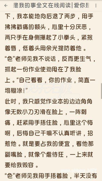 “色”老师见我不说话,反而更生气,抓起一份作业使劲甩在了我脸上。“自己看看,你的作业,简直一塌糊涂!”