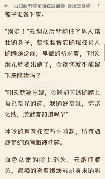 温其如玉的小说《江山如画有你无悔》带给大家。下过雨的天空,湛蓝而忧郁, 让人心情愉快, 却止不住我的思念。云烟是大楚的公主,却龌龊的爱上了自己的皇兄云庭峥。从一开始云烟就知道自己的爱情见不得光,她一直小心翼翼的藏着这份心思,做云庭峥眼中天真无邪的皇妹。可这一切随着大楚戛然而止。更多精彩内容尽在小编提供的《江山如画有你无悔》APP,在内搜索书名即可免费阅读。