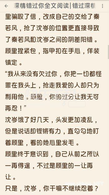 错过深情错过你小说情节跌宕起伏、扣人心弦,是作者最新倾力写作的一本情节与文笔俱佳的言情小说