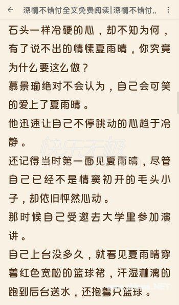 深情不错付(夏雨晴慕景瑜小说)大结局APP内免费在线阅读带给大家,爱情更多的是悸动,而婚姻更多的是责任,在柴米油盐里烹调人生,相互扶持雕刻地老天荒。就如张爱玲那句:“现世安稳,岁月静好”,一房二人三餐四季,愿我们都能遇一人白首,择一城终老。