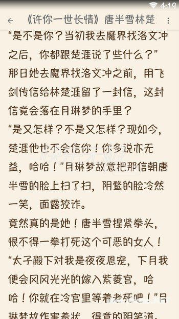 怎样看《许你一世长情(唐半雪林楚涯小说)全章节APP内免费阅读》?安装App后在APP中搜索小说名《许你一世长情》,如果没有您要的小说,请联系APP内的客服!