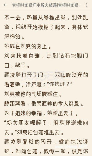 若将时光轻许小说构思细腻而不失潇洒,笔触真实却华美,剧情环环相扣,引人爱不释手,感情交代清晰且含蓄,人物形象鲜活生动,跃然纸上,仿佛就站在读者面前,值得推荐!