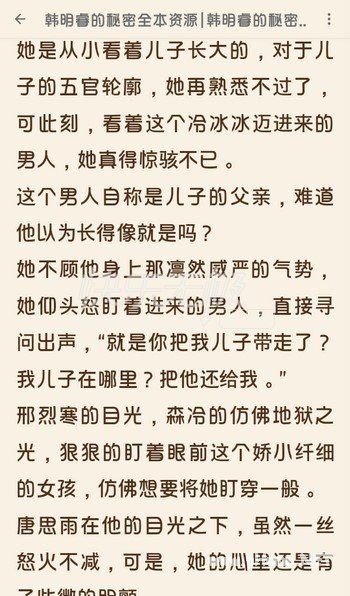 韩明睿的秘密完整版小说滔滔的文学功底深厚得可以,不是一般人能驾驭得来的,想看韩明睿的秘密全集的朋友,搜索韩明睿的秘密全本资源,体验韩明睿的秘密完整版app内全文阅读!