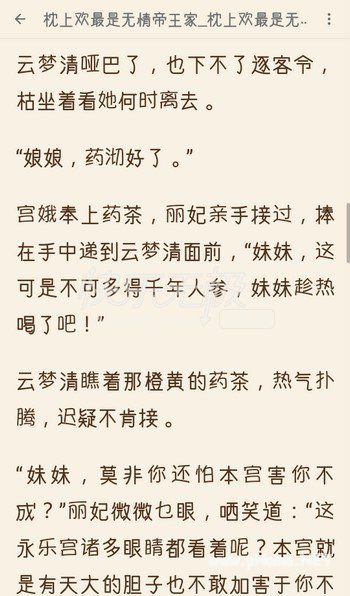 小说枕上欢:最是无情帝王家中,以感情为中心,以人物为铺垫,以性格为色彩,多种描写,妙到毫巅。值得观看。