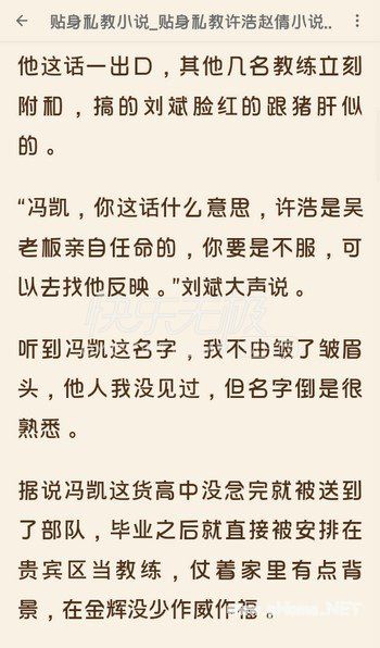贴身私教小说暖暖的爱情故事,仿佛感受到家一般的温馨,虽然故事结局并不是那么让每个人都喜欢,但至少挑剔的我从头到尾都非常喜欢。下载免费全本小说贴身私教,免费观看,听我的,没错。