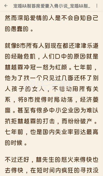 就像B市所有人到现在都还津津乐道的经融危机,人们口中的原因就是林越霖冲冠一怒为红颜。七年前,他为了找一个只见过几面还怀了别人孩子的女人,不惜动用所有关系,将B市搅得时局动荡,经济萎靡。甚至有很多中小企业因为难以抗拒林越霖的打击,而纷纷破产。七年前,也是国内失业率到达最高的时候。