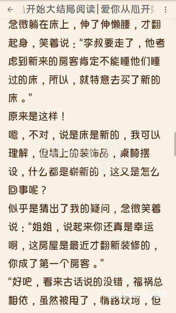 似乎是猜出了我的疑问,念微笑着说:“姐姐,说起来你还真是幸运啊,这房屋是最近才翻新装修的,你成了第一个房客。”