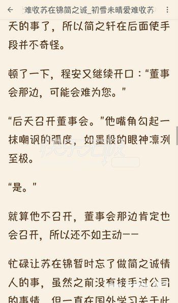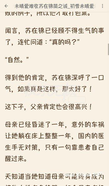 初雪未晴爱难收完整全文分享阅读,小说文章清逸婉丽,流畅连贯,尤其人物语言幽默风趣,再加上一些精妙词语的使用,无形中为文章增添了不少情趣。喜欢看苏在锦简之诚小说全文的朋友,小编提供初雪未晴爱难收(苏在锦简之诚小说)全文APP内免费阅读,支持苏在锦简之诚小说全本在线阅读。