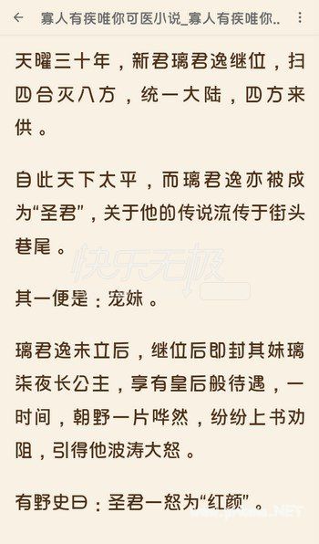 缘分,是心有灵犀的一种感觉,是一见如故的一种倾向,缘分是《寡人有疾唯你可医》这本书,随意翻会错过,认真看会流泪。璃柒夜是璃君逸的皇妹,在她的大婚之日上,这个男人却闯进她的新房。她曾经是他的心头肉,整个天下无人不知,天子是如何的宠爱她。事到如今,他对她或许还有感情,但绝不再是爱。她明白这一点,所以努力的克制自己。本站为您提供app下载,可以免费阅读观看《寡人有疾唯你可医》完整全文。
