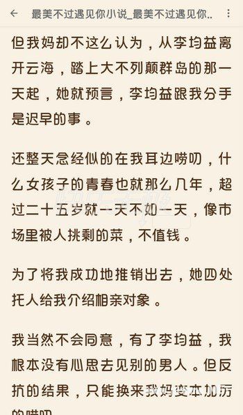 我当然不会同意,有了李均益,我根本没有心思去见别的男人。但反抗的结果,只能换来我妈变本加厉的唠叨。