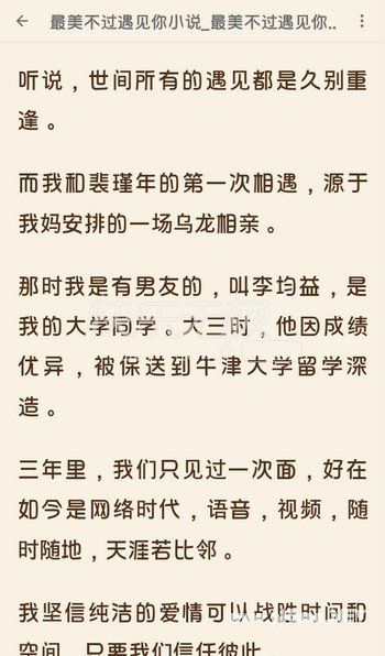 往后余生,风雪是你,平淡是你,清贫是你,荣华是你,心底温柔是你,目光所至,也是你。爱情就是我爱你,你也爱我,《最美不过遇见你》讲的就是裴瑾年夏沐之间宠溺的爱情故事。夏沐坚信在这物欲横流的时代,自己守护了三年的感情是最美好的,可终究被现实打败,一段激情视频摧毁了她纯洁的爱情,也摧毁了她的信念,于是她任性的闪婚了,对象还是没见过几次的裴瑾年。《最美不过遇见你》免费全文,还有更多精彩小说都在本站。