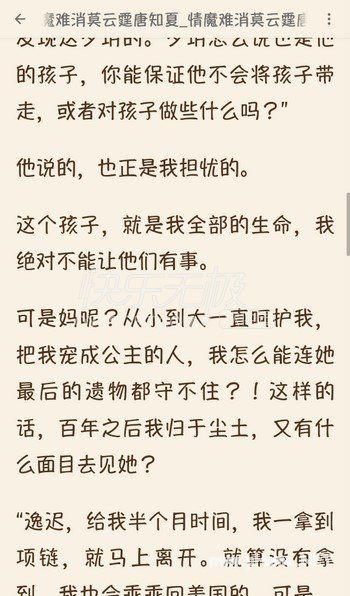 只因此生不再相遇,才会念念不忘。小说《情魔难消》是否必有回响。就等大家来阅读了。唐家与莫家是世交,唐知夏从小就知道,长大后她会是莫云霆的妻子,唐知夏一直喜欢莫云霆,所以能嫁给他,她没有半分抵触,而原本莫云霆虽说不上爱唐知夏,但两人的婚姻也相敬如宾,可没想到结婚不过一个月,莫云霆却突然变了态度。《情魔难消》全文免费资源尽在小编提供的百度网盘资源。