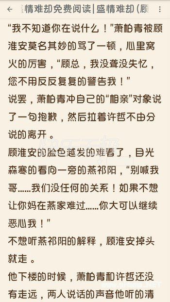 怎样免费阅读盛情难却(顾淮安萧柏青)完整版电子书小说?下载安装App后在APP中搜索小说名《盛情难却》,如果没有您要的小说,请联系APP内的客服!