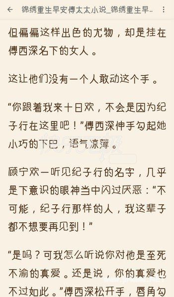 有一种小说,没有气壮山河的气势,也没有天下第一爱的那种“荡气回肠”,仅仅只是一本平凡的故事小说锦绣重生:早安傅太太,细细密密的感情描写,真挚而不泛滥的痴情,喜欢的话,本站还有完整无广告无删除的全本免费小说锦绣重生:早安傅太太下载。