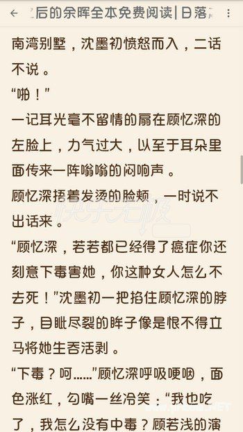 怎样看日落之后的余晖(顾忆深沈墨初)完整版小说全文APP内在线阅读?下载安装App后在APP中搜索小说名《日落之后的余晖》,如果没有您要的小说,请联系APP内的客服!