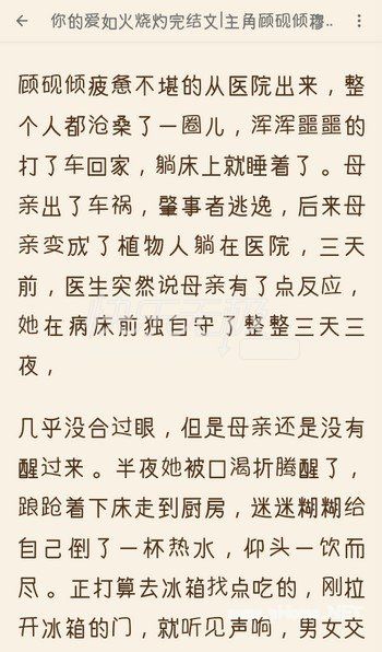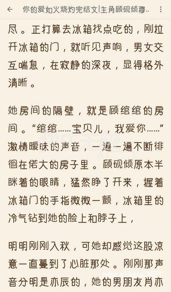 你的爱如火烧灼完本小说资源免费分享,小说言语搞笑鬼怪、故事也是妙趣横生,人物形象多姿多彩,好像探索不尽的乐园一样。小编专门为大家推荐了小说你的爱如火烧灼全本章节内容APP内免费阅读。